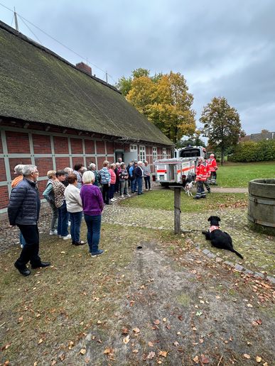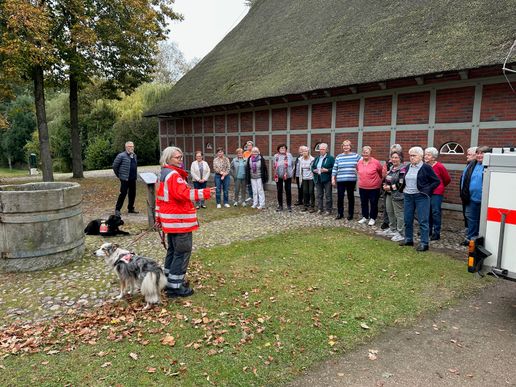 Tierischen Besuch gab es für die Freunde des DRK-Ortsvereins Sittensen bei der jüngsten Kaffeetafel im Heimathaus. Die DRK-Rettungshundeabteilung aus Lüneburg unter der Leitung von Silke Felske war mit ihren Mitstreitern Gritt Klauß und Jürgen Soetbeer und natürlich ihren Hunden Smilla, Funny und Florett angereist, um von ihrer Tätigkeit zu berichten.