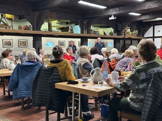 Zunächst wurde sich nach der Begrüßung jedoch an der Kaffeetafel mit Kuchen und Schnittchen, die vom Serviceteam des Ortsvereins wieder liebevoll vorbereitet wurde, ausgiebig gestärkt.