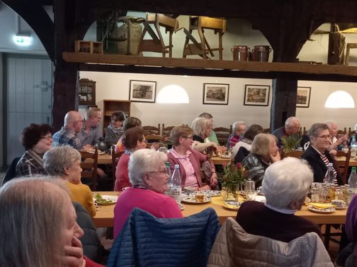 Zunächst wurde sich nach der Begrüßung jedoch an der Kaffeetafel mit Kuchen und Schnittchen, die vom Serviceteam des Ortsvereins wieder liebevoll vorbereitet wurde, ausgiebig gestärkt.
