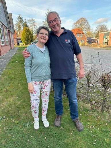 Das Deutsche Rote Kreuz und der Vorsitzende des Ortsvereins Sittensen, Jürgen Kiel, konnten sich bei Ulrike Ahrlich und Sören Evers für die jeweils 50. Spende persönlich mit einem kleinen Präsent bedanken.